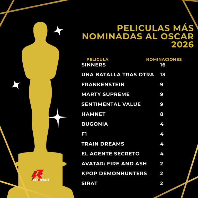 La película Sinners (Pecadores), dirigida por Ryan Coogler, lideró la lista de nominaciones con 16 postulaciones, la mayor cantidad que se ha registrado en la historia de los Oscar. Este hito supera el récord anterior de 14 candidaturas que compartían clásicos como Titanic, La La Land y All About Eve.
